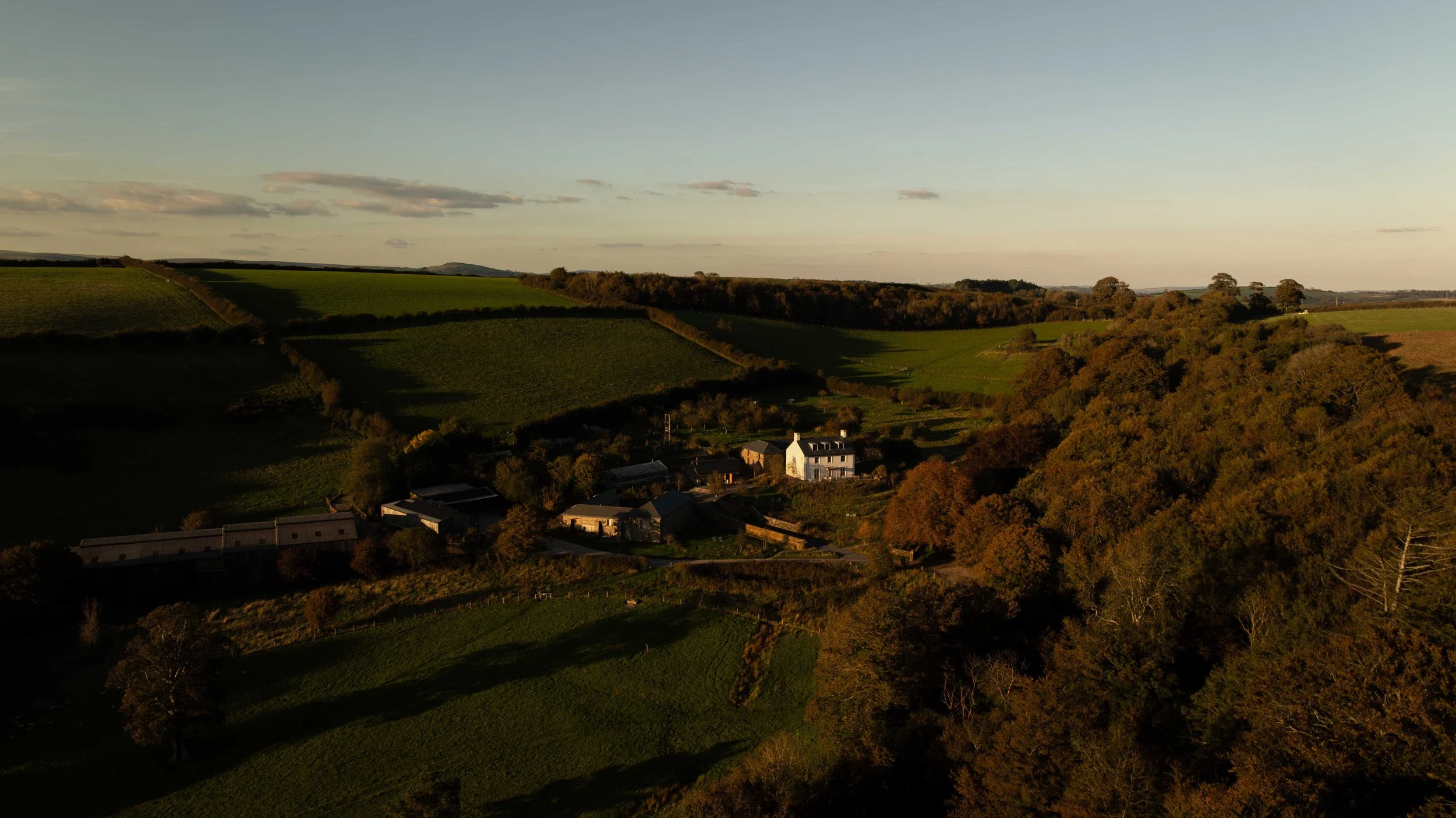 Coracle Retreats take place at Fowlescombe Farm, a beautifully restored regenerative farm where rolling hills and wide-open skies create an immediate sense of calm.